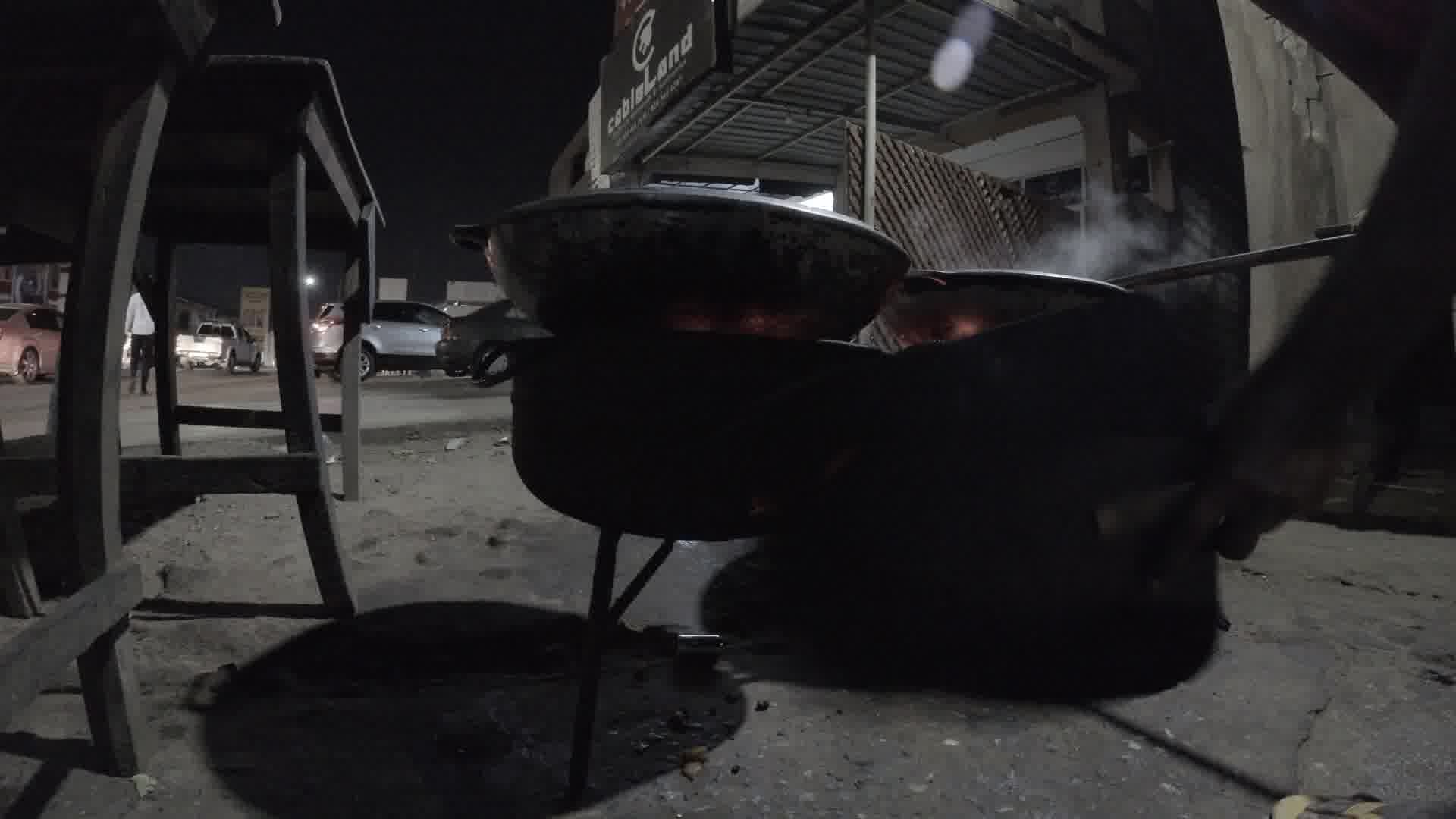 Fanning Coalpot Frying Yam At Night