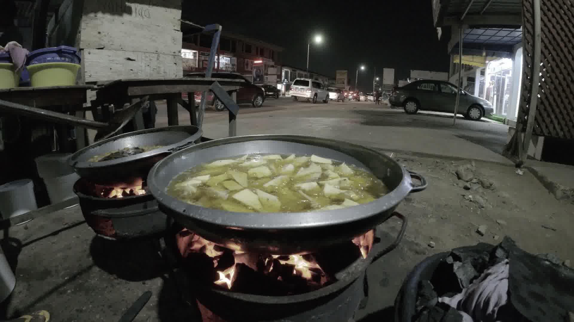 Frying Kelewele Fire Night Roadside