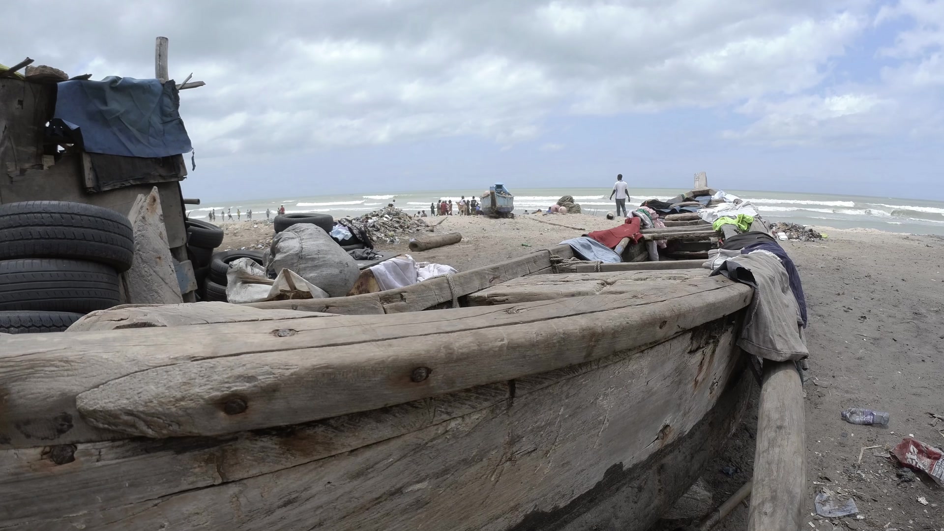 Fisherman Mending Fishing Net Stock Video