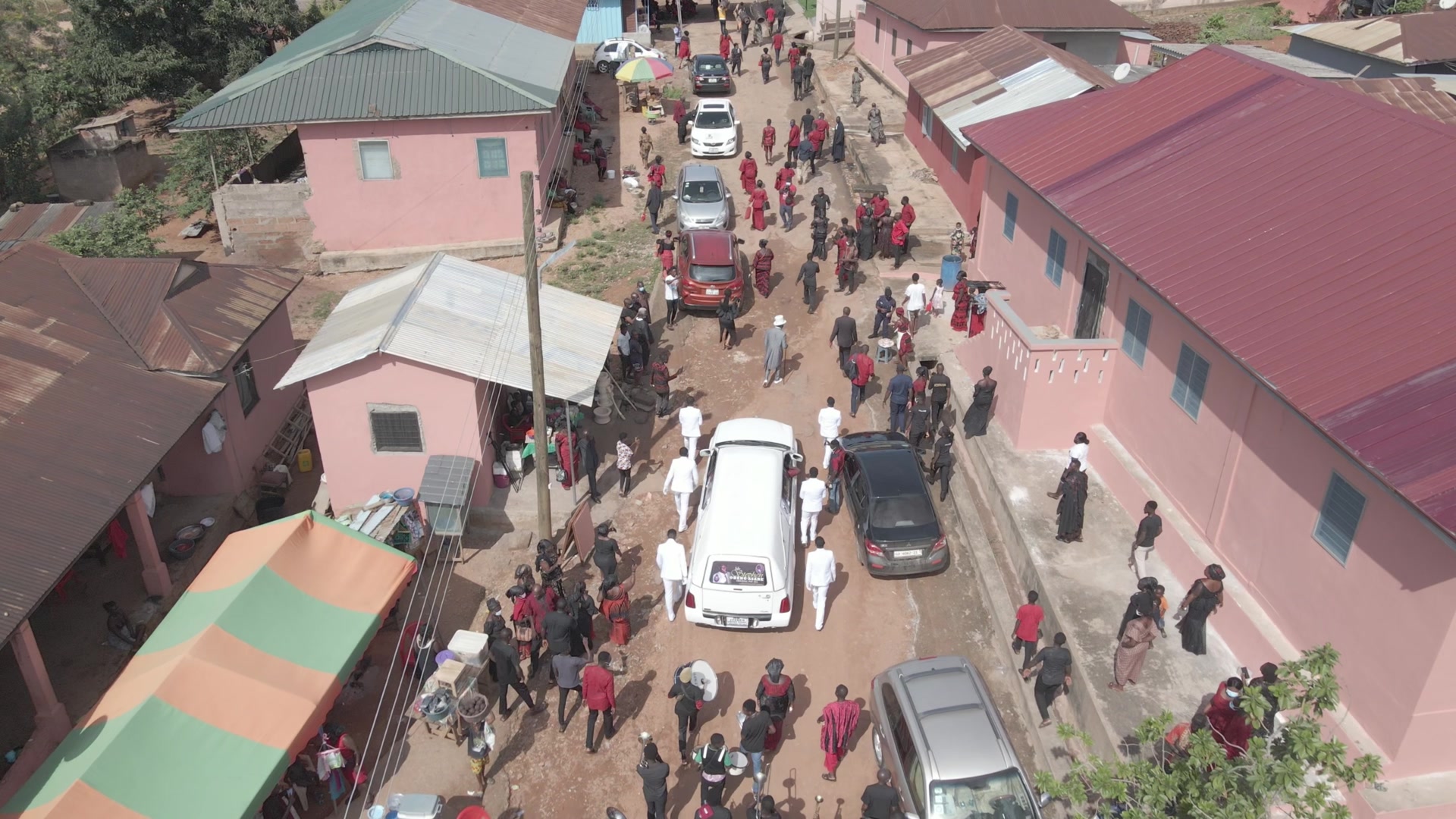 Funeral Procession Hearse Paulbearers Stroll Scene Full