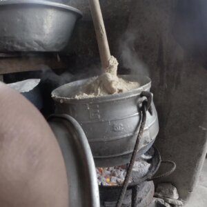 Young Girl Prepare Banku In Pot