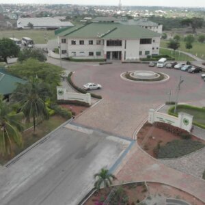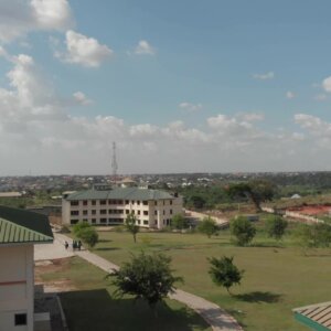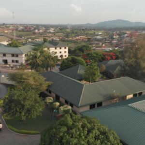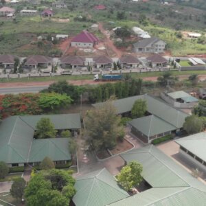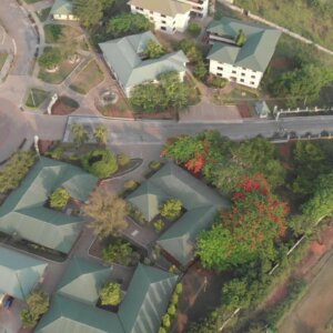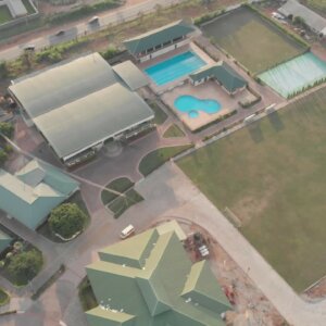 High School Classrooms Greenery Drone Shot