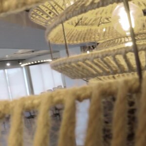 Incandescent Hanging Lamp Woven Shade