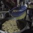 Frying Kelewele Remove From Oil Into Plastic Colander